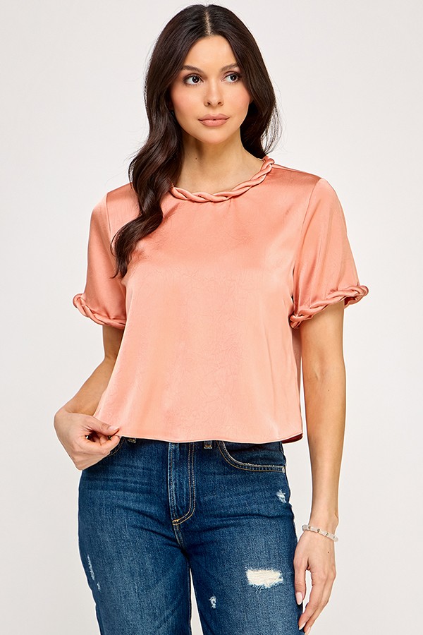 Blusa en tono fucsia con estampado floral. Con smock en la espalda