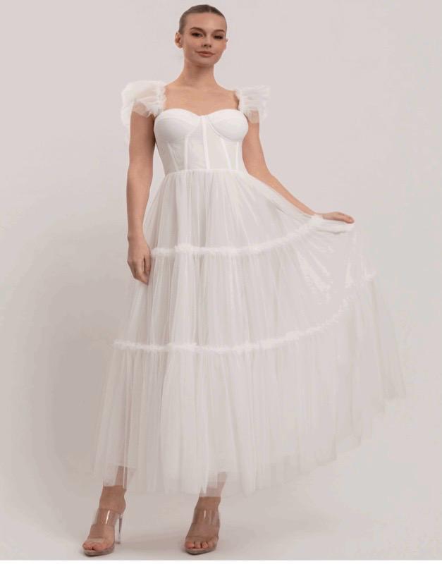 vestido lago de tul en mangas y falda
